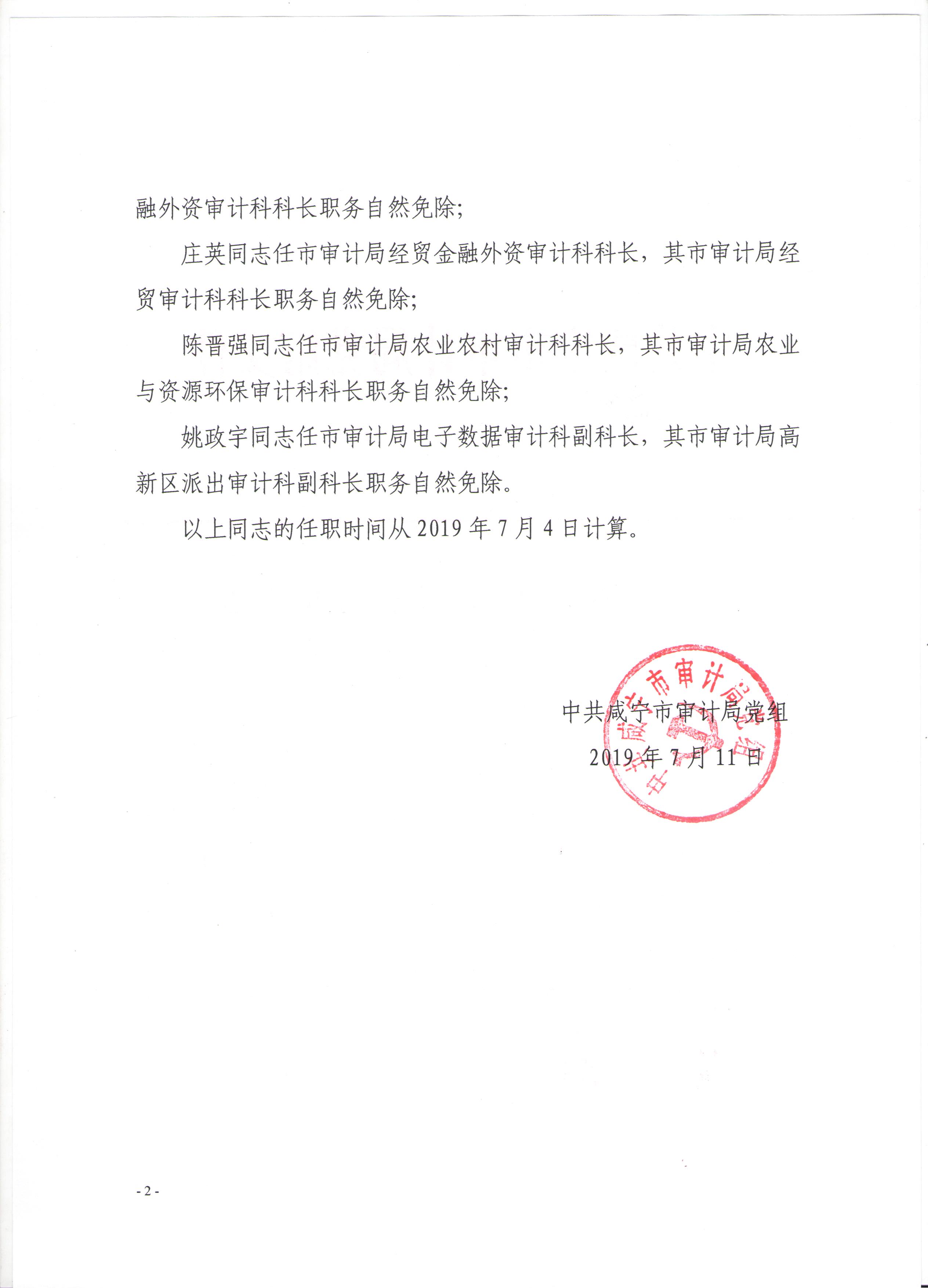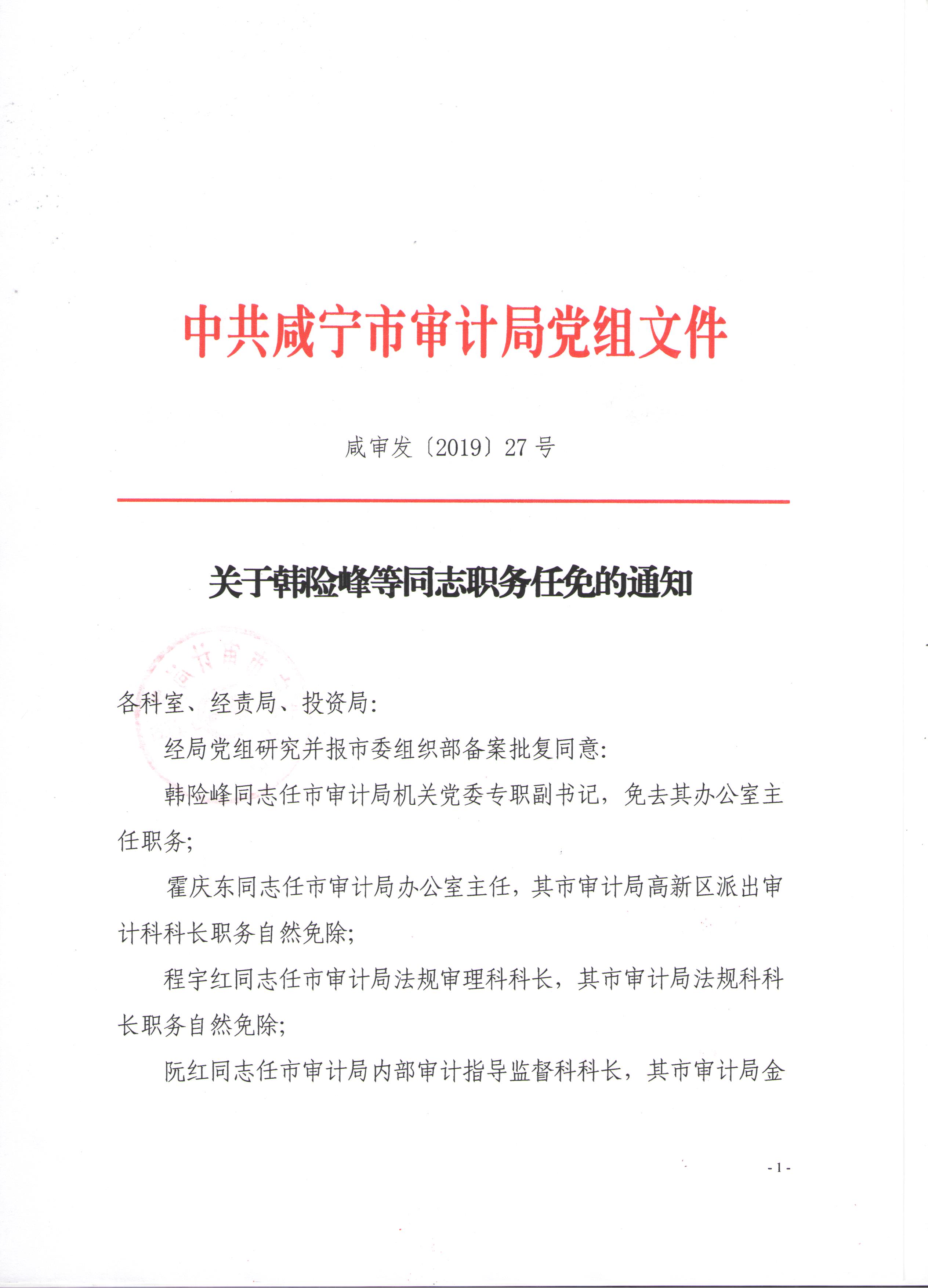 索引号 : 11337151/2019-1785700 文 号 : 咸审发〔2019〕27号