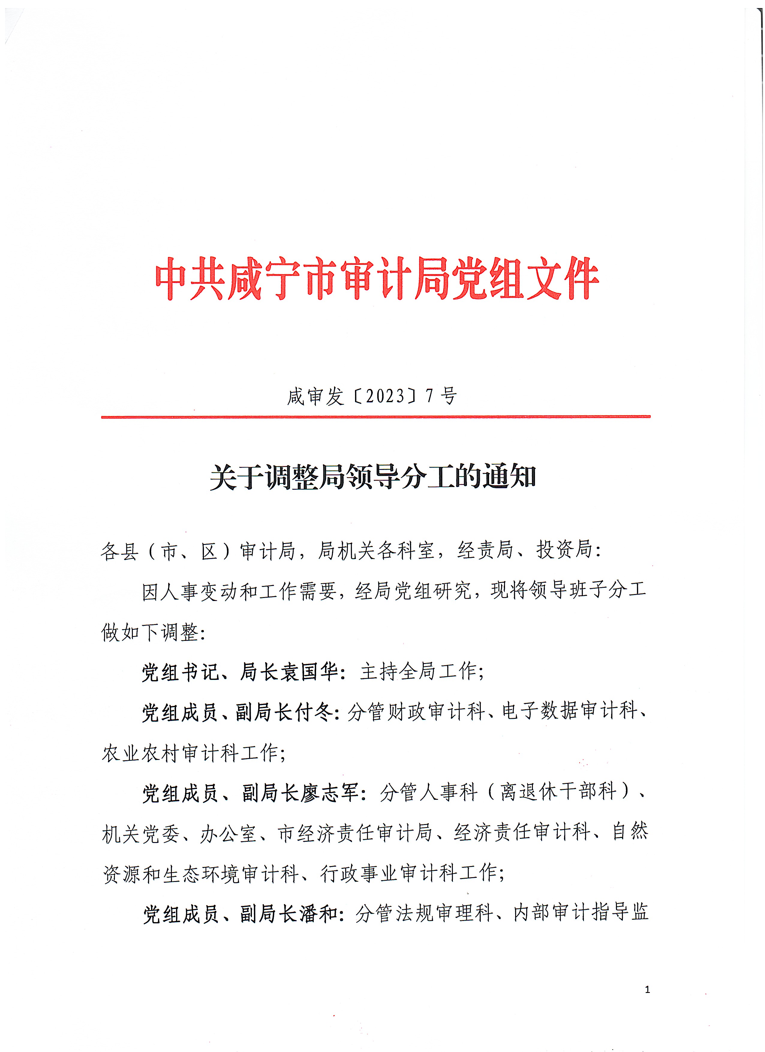 关于调整局领导分工的通知
