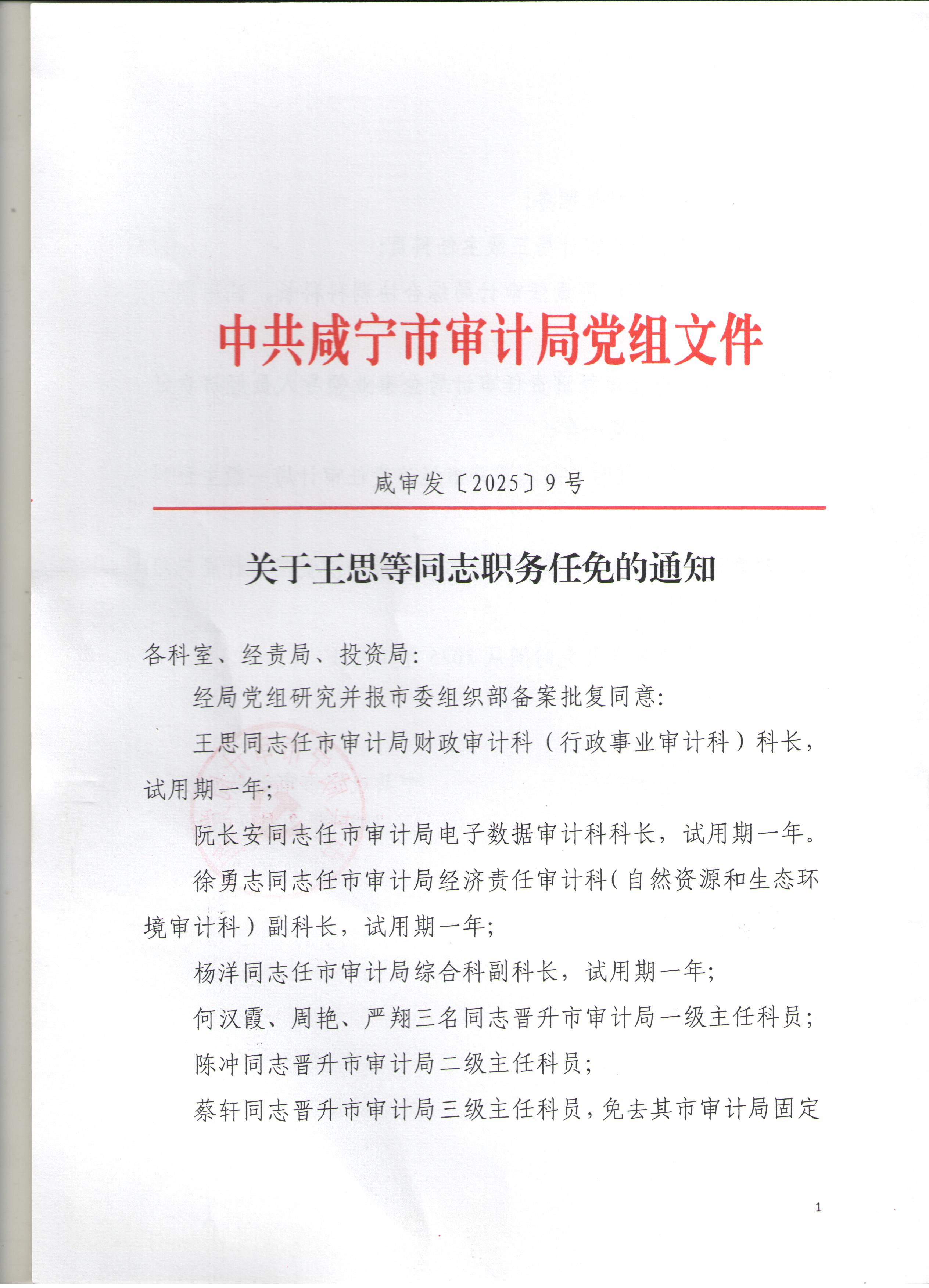 主题分类: 政务公开;人事工作 发布机构: 咸宁市审计局