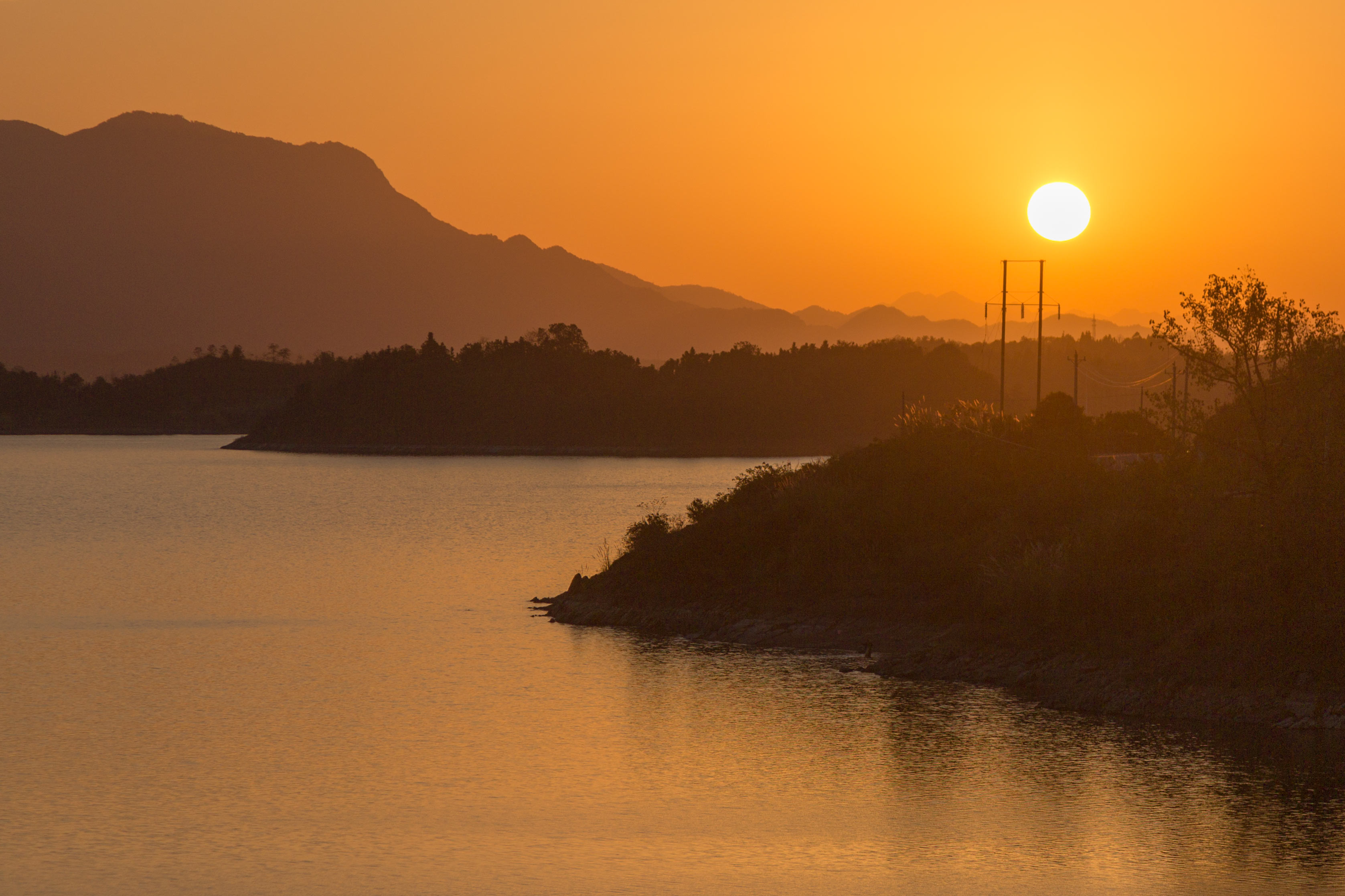 夕日一轮落海橙,烟霞荡漾与风清。小舟不动晚波平。